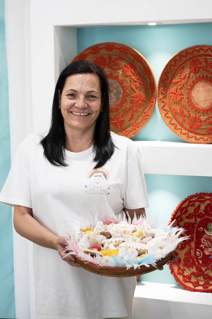 Amaretti, pardule, pirichittus, pan’e saba, pistoccheddus: preparazioni antiche dove imparare a memoria la ricetta non basta, perché sono solo l’esperienza, la mano e l’occhio che possono dosare ogni singolo ingrediente e movimento e che creano la profumata e dolce magia. “Tutto è cominciato proprio qui a Selargius”, racconta Lola, oggi memoria storica del laboratorio ma ancora in prima linea ogni giorno in cucina e al banco per accogliere i clienti. “Mia mamma Maria impara fin da piccolissima a preparare dolci. Glielo insegnarono le zie e lei fece lo stesso con me e le mie 3 sorelle”.